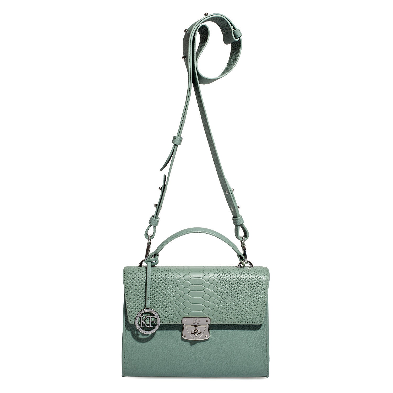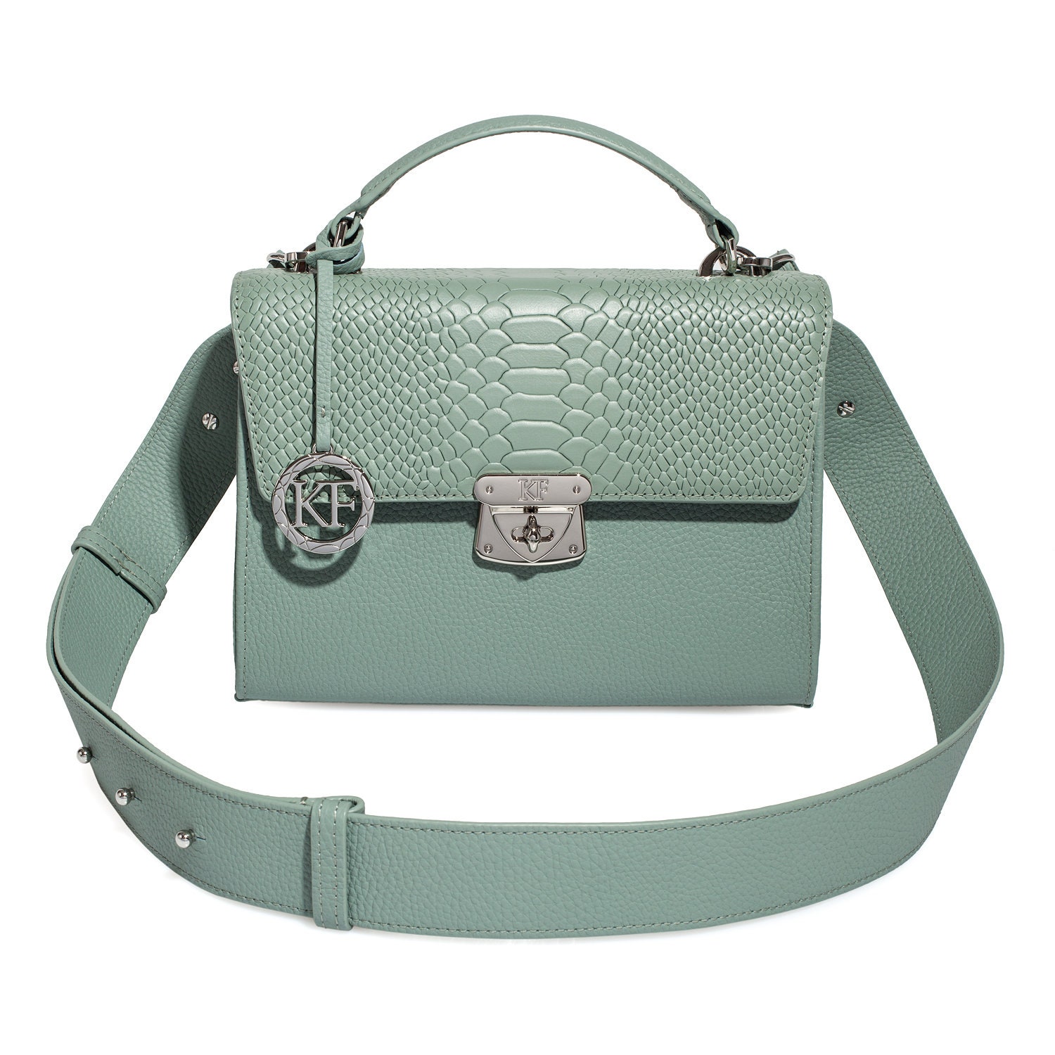 Dark blue genuine leather woman handbag from ukrainian designer Katerina Fox , ideally combines the dark green crocodile print genuine leather and black leather trim which allows luxurious look and is perfect for any style . Roomy, comfortable bag has sturdy leather handles and includes adjustable long leather handle . All hardware what we use is good quality,reliable and durable. Inside the bag one large compartment , two patch pockets and one zip pocket, bag closes with a zipper . The bottom of the bag is protected by metal legs . This model looks very solid and stylish!