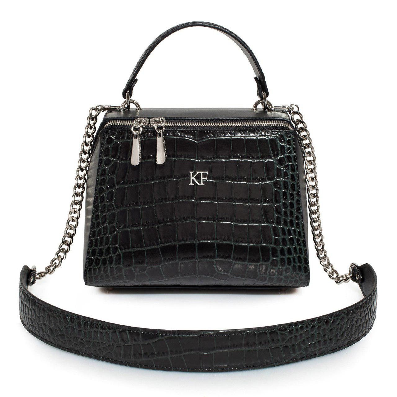 Leather Top Handle Bag, Black/Green Leather Handbag Top Handle, Women's Leather Bag KF-3180