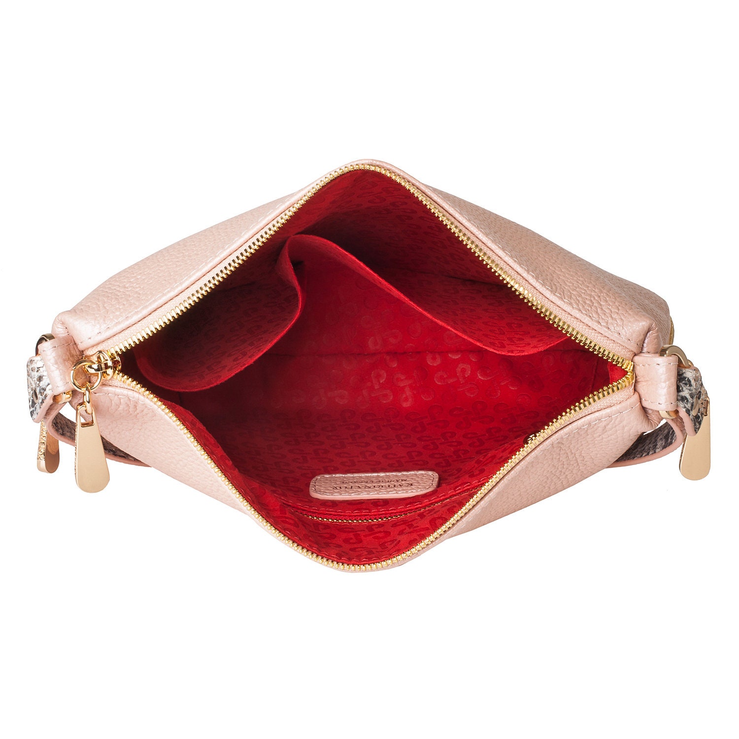 Beige pearl genuine leather woman shoulder bag from ukrainian designer Katerina Fox. Fashionable and elegant modern bag KF is made in a soft cream color with gold trim and accessories. A great combination is able to attract attention and highlight your exquisite taste. Inside the bag one large compartment, one patch pocket and one zipper pocket, bag closes with a zipper. The handle length is adjustable.