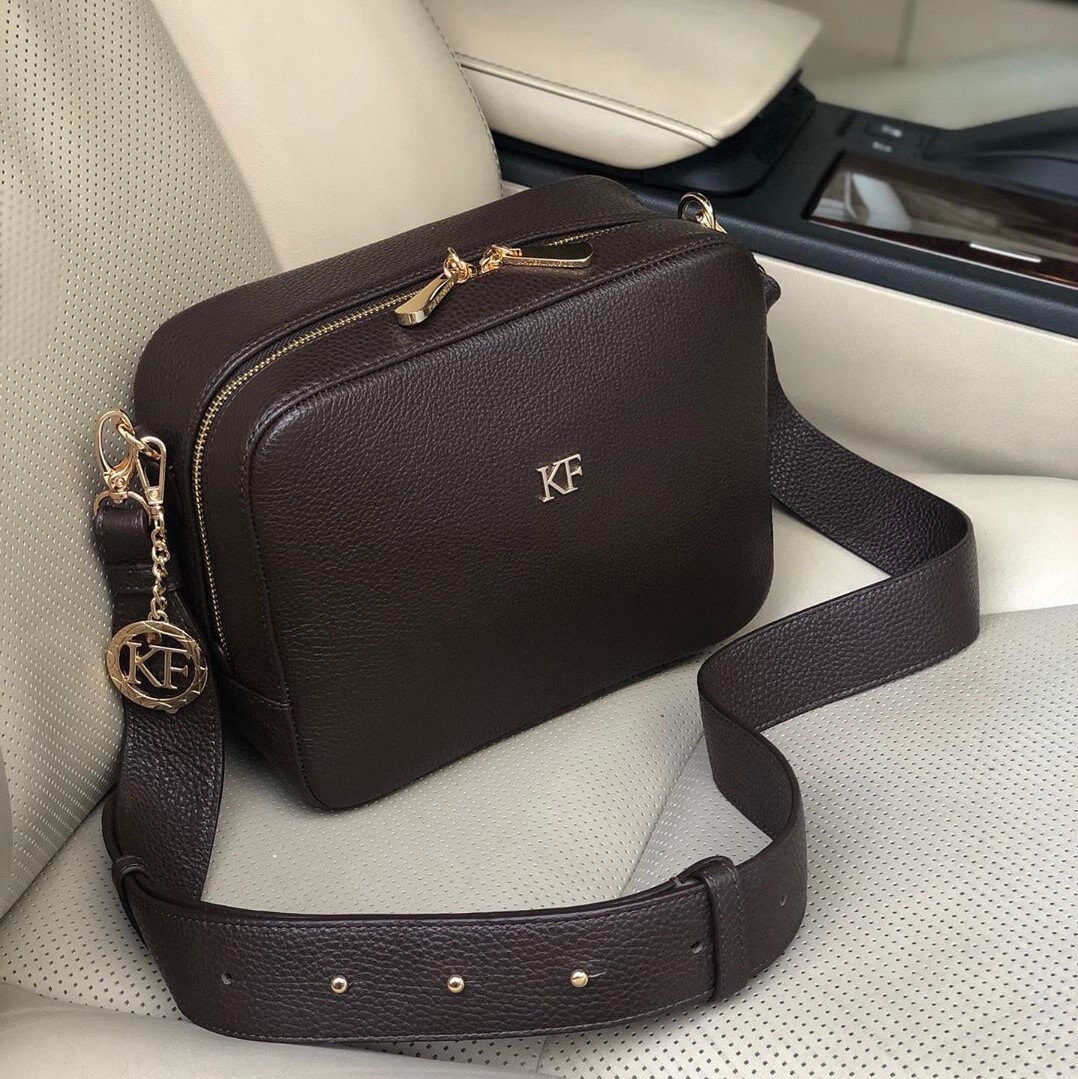 Brown genuine leather woman shoulder bag from ukrainian designer Katerina Fox. Fashionable and elegant modern bag KF for bright girls and women. This bag is able to attract attention and highlight your exquisite taste. The internal space of a bag is equipped with one spacious compartment and one zipper pocket. The bag is closed with a zipper. The length of the strap is adjustable. The kit also includes a storage bag.