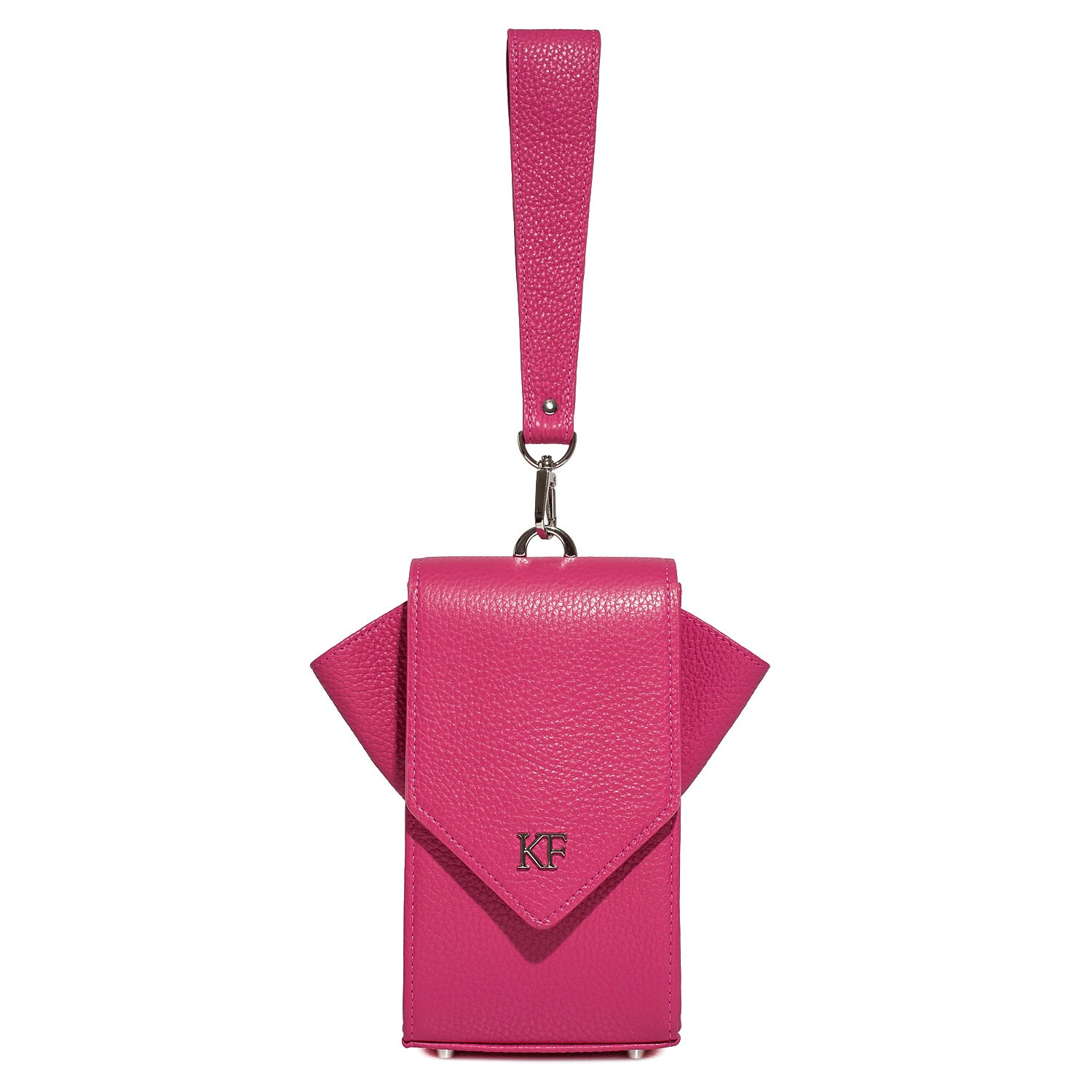 Fuchsia genuine leather woman crossbody bag from ukrainian designer Katerina Fox. Fashionable and elegant modern bag KF for bright girls and women. This bag is able to attract attention and highlight your exquisite taste. All accessories for Katerina Fox bags makes the same factory as for Michael §¬ors, Calvin Klein, DKNY and other famous brands.The internal space of a bag is equipped with one spacious compartment, four patch pockets for cards. The bag is closed on the button-magnet. The bag has a short removable handle on wrist.The length of the strap is adjustable. The kit also includes a storage bag.