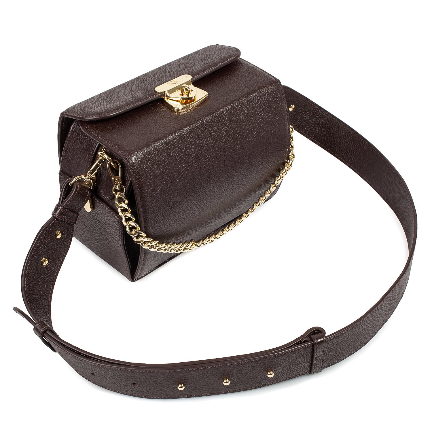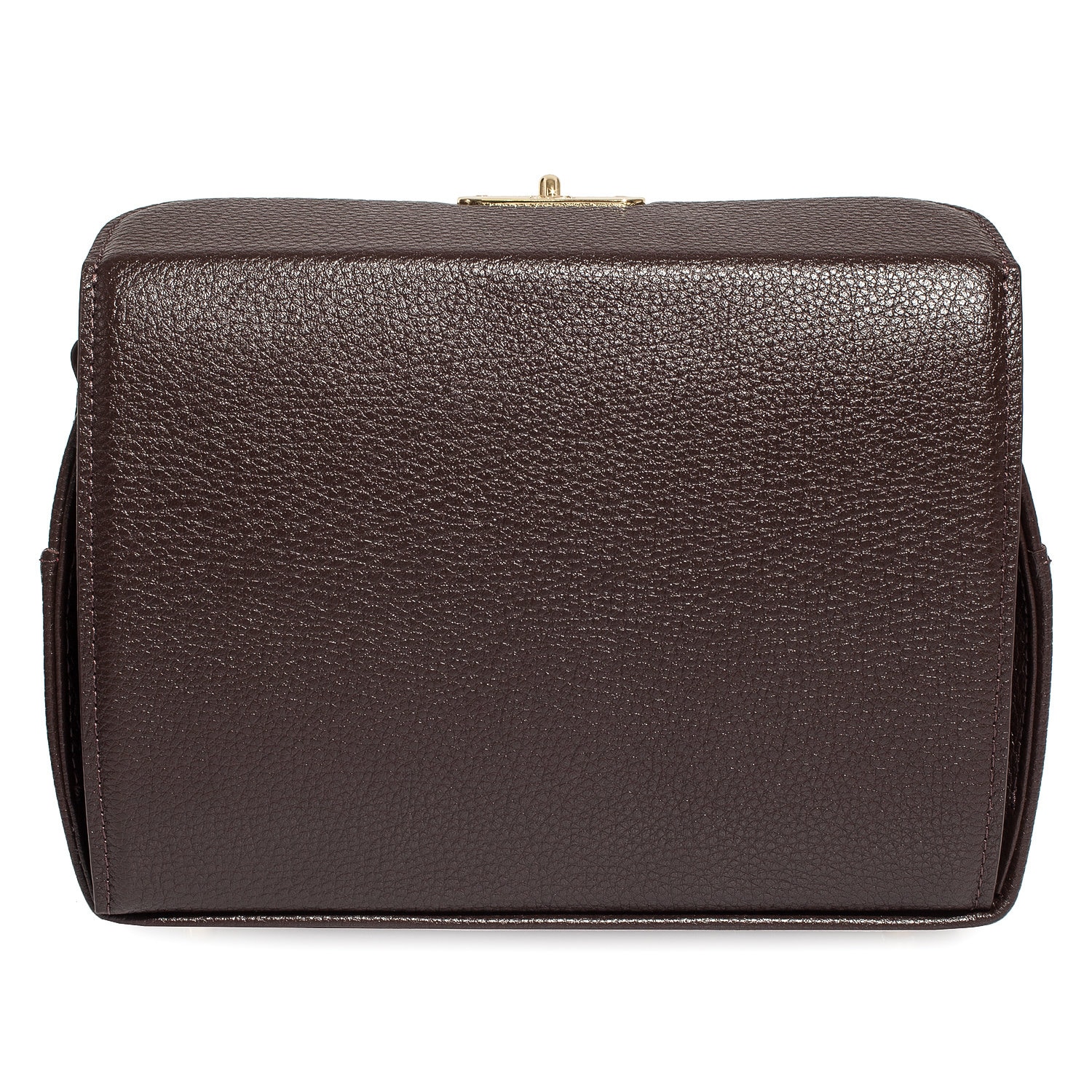 Brown genuine leather handbag from Ukrainian designer Katerina Fox. This model is designed for women who appreciate the sleek design combined with functionality and comfort. High-quality and reliable hardware ensures long service bags. The internal space of a bag is equipped with three spacious compartments and one patch pocket. The bag is closed with a clasp. The bottom of the bag is protected with metal legs. There is a long handle that allows you to wear the bag on the shoulder. The kit also includes a storage bag.