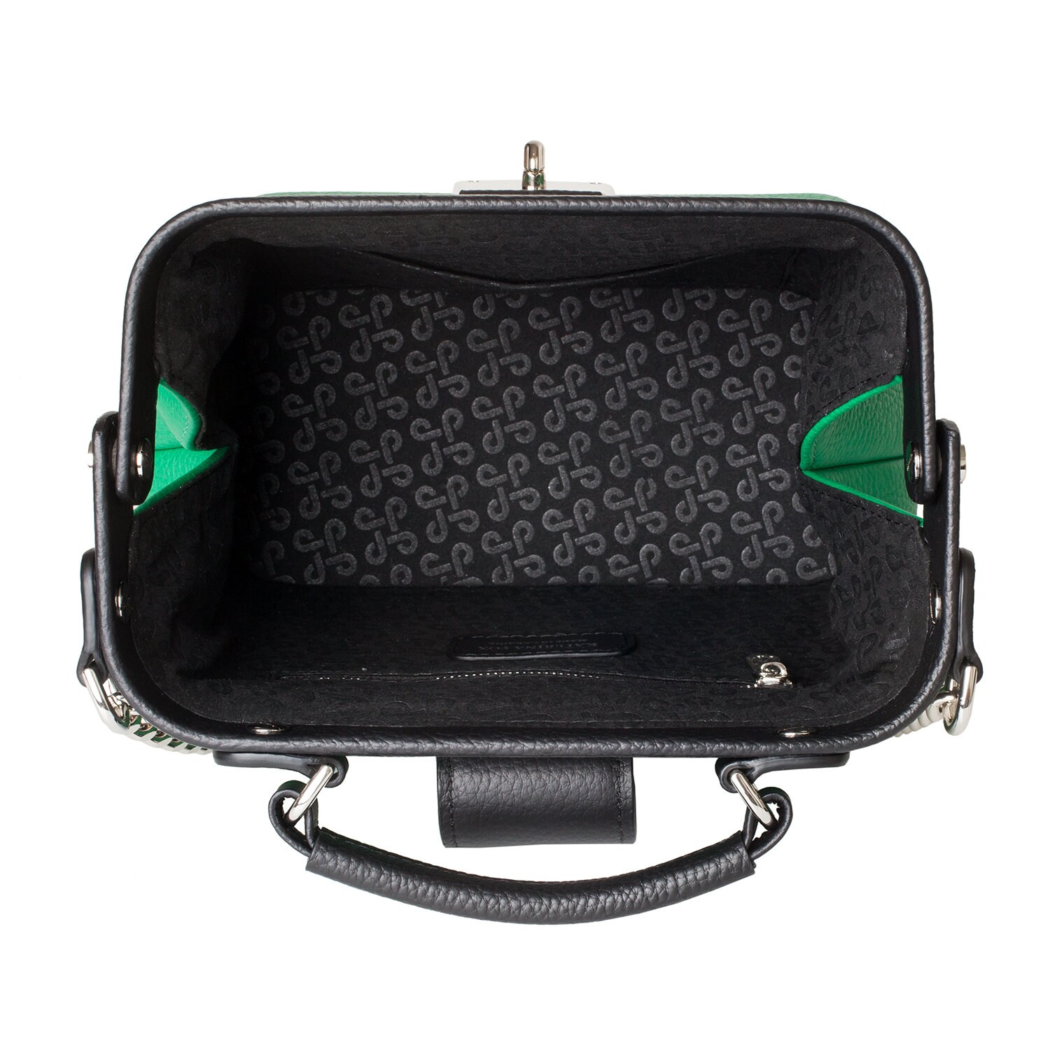 Women's leather doctor bag made of genuine leather, hardware with galvanic coating and microfiber lining. The internal space of a bag is equipped with one spacious compartment, one patch-pocket and one zipper pocket. The bag is closed with a clasp. The kit also includes a storage bag.