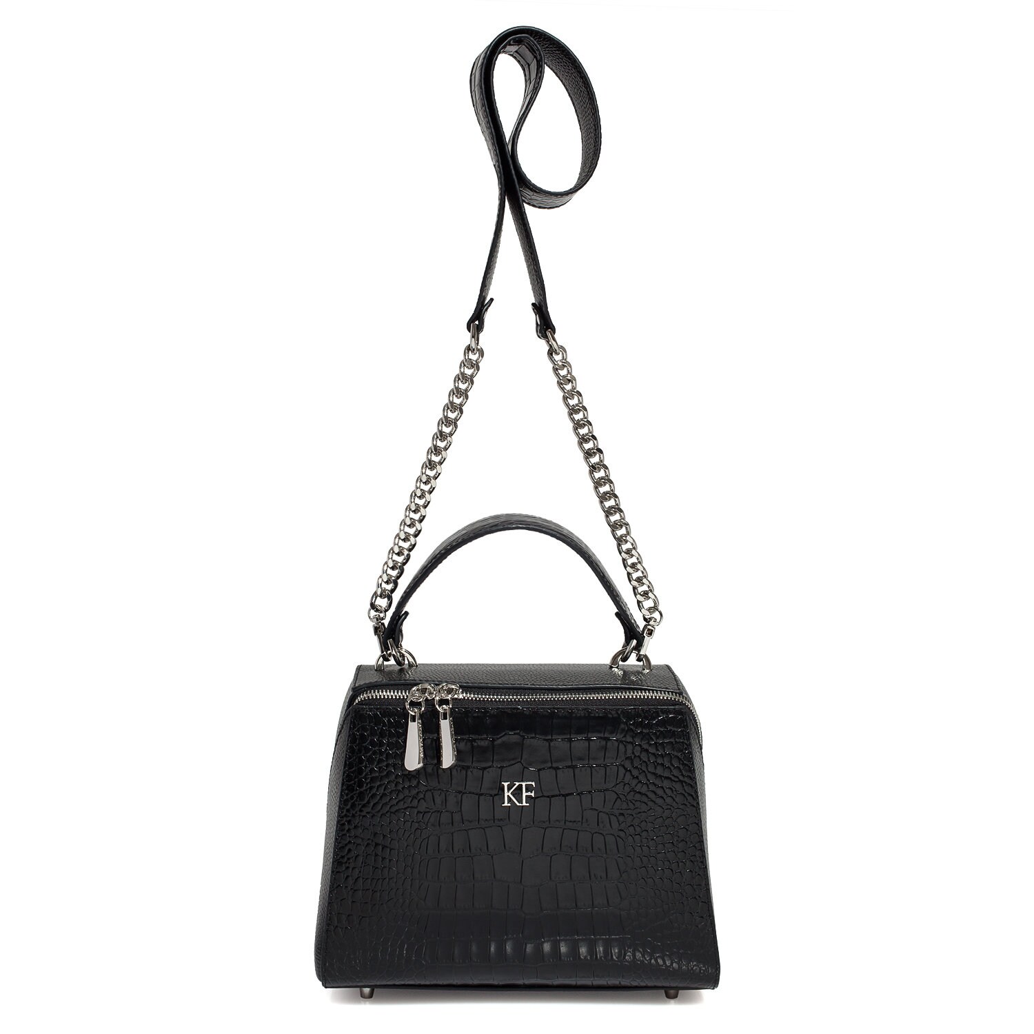 Black genuine leather handbag from ukrainian designer Katerina Fox. This model is designed for women who appreciate the sleek design combined with functionality and comfort. High-quality and reliable hardware ensure long service bags. The internal space of a bag is equipped with one spacious compartment and two patch-pockets and one zipper pocket. The bag is closed with a zipper. The bottom of the bag is protected with metal legs. There is a long handle that allows you to wear the bag on the shoulder. The kit also includes a storage bag.