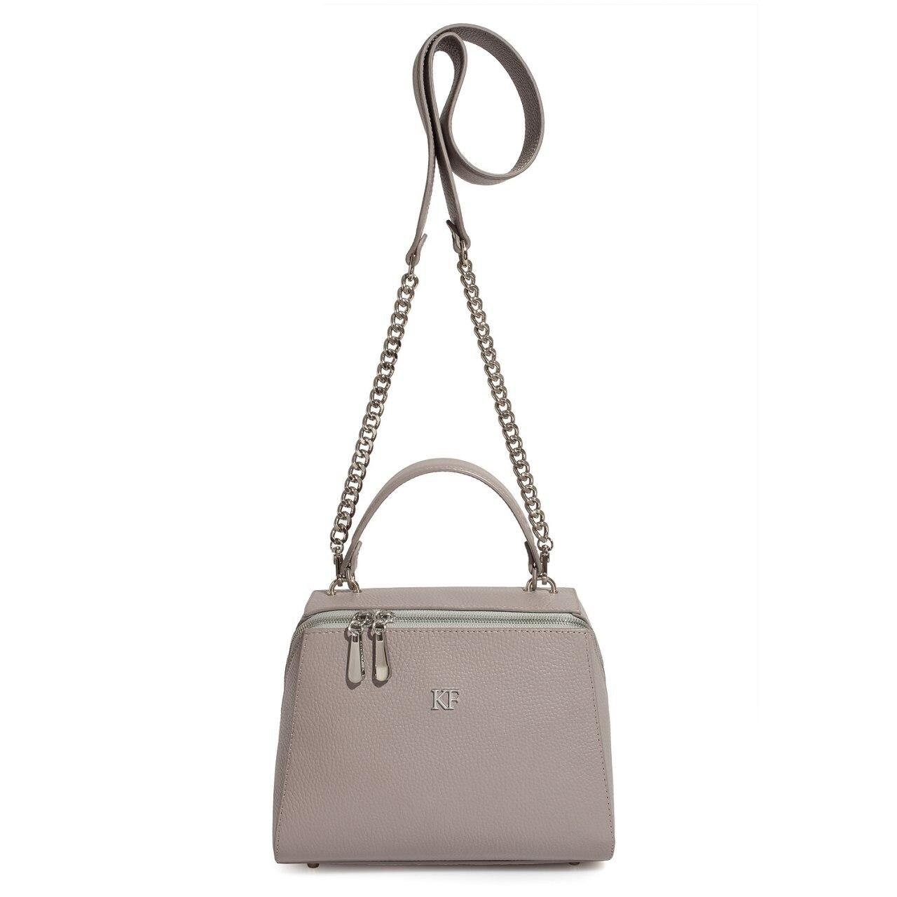 Leather Top Handle Bag, Grey Beige Leather Handbag Top Handle, Women's Leather Bag KF-3087