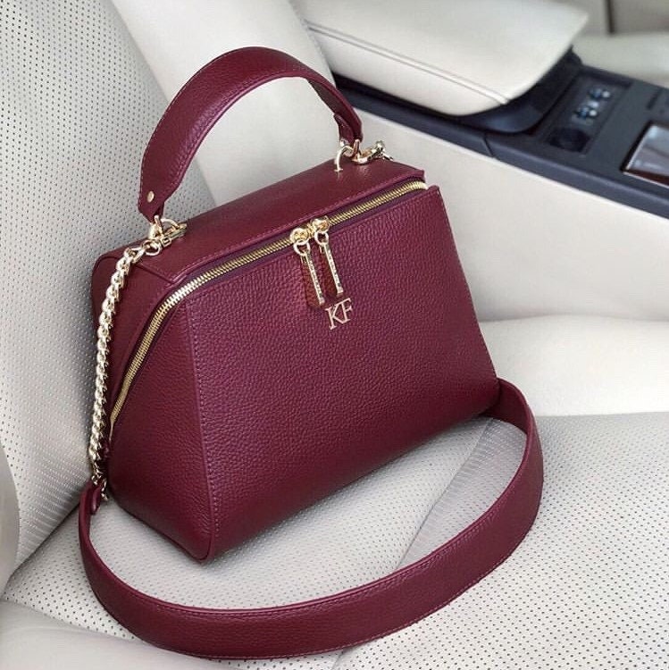 Leather Top Handle Bag, Marsala Leather Handbag Top Handle, Women's Leather Bag KF-3086